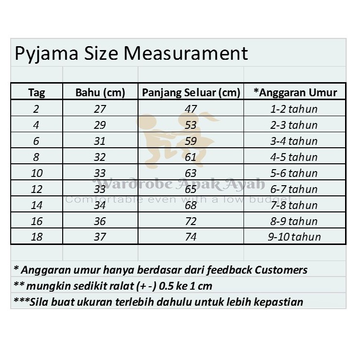 Size Baju Budak Ikut Umur - Baju Baby Baju Kanak Kanak Girl Store Manjaku Store Manjaku